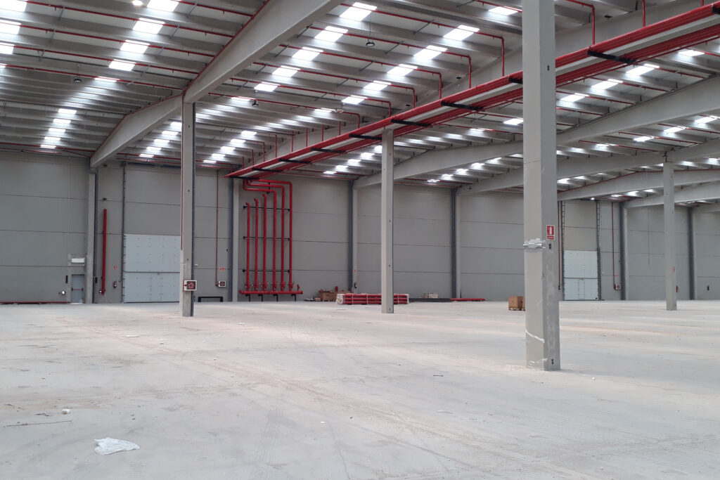 Adecuación a normativa PCI, de nave de uso logístico y ampliación de zona sin uso. Ampliación de nave en más de 8.000 m2 hasta alcanzar un total de 42.000 m2 de superficie de uso industrial. Adaptación de tres módulos de oficinas a nuevos estándares más modernos y eficientes, nueva y completa instalación de PCI y desenfumaje, iluminación LED nave y oficinas y nuevos accesos a nave y oficinas mediante rampas, escaleras. Se dota de nuevos accesos comunes y zonas verdes.